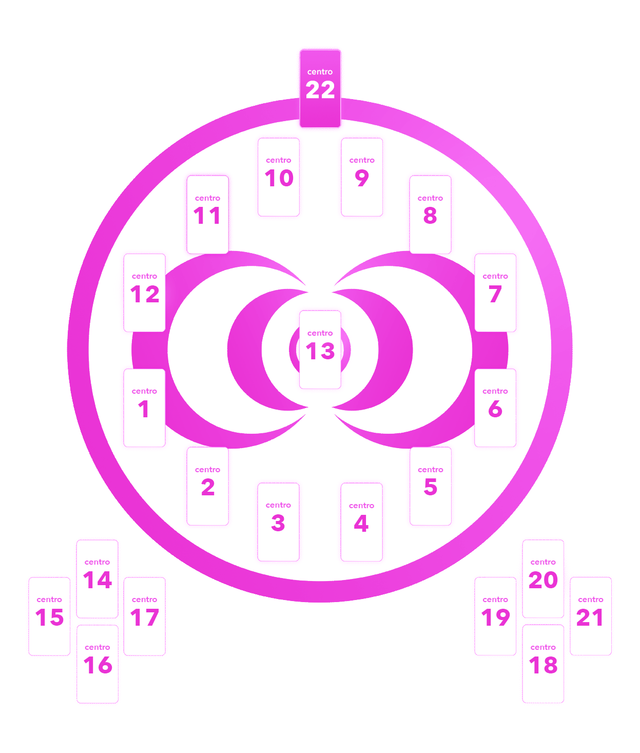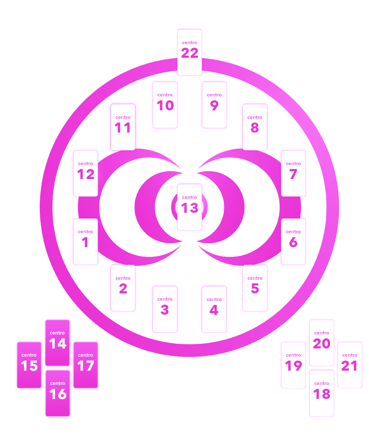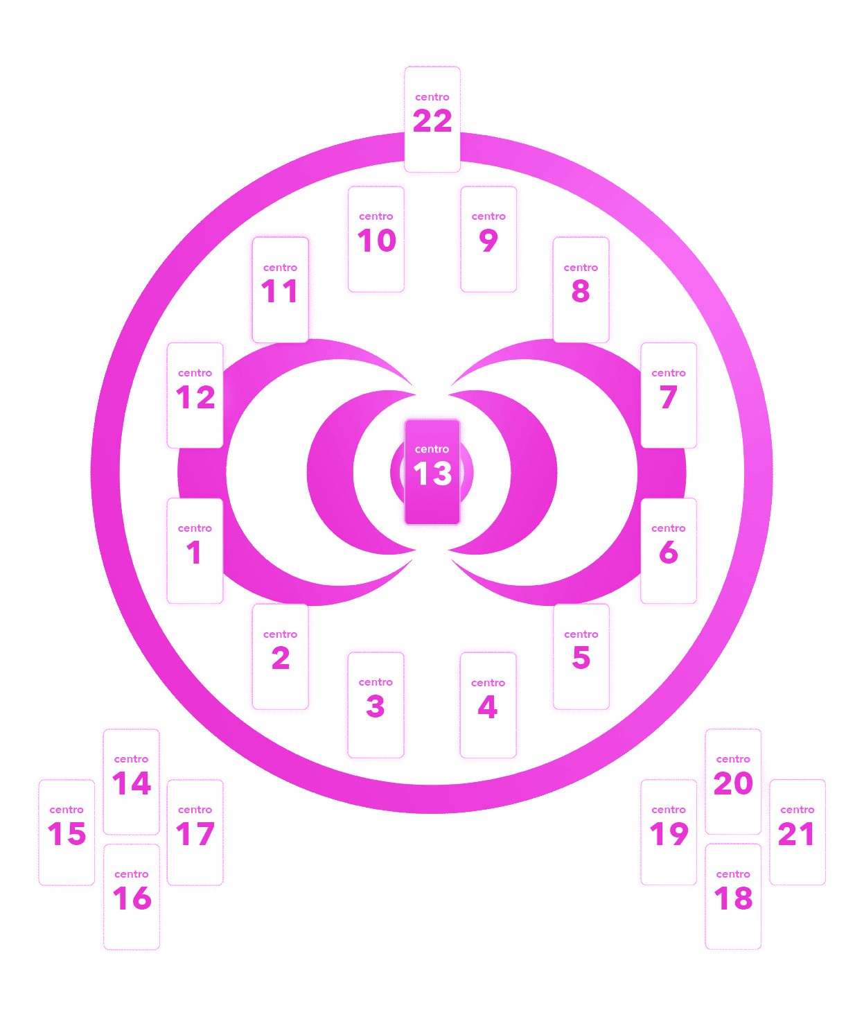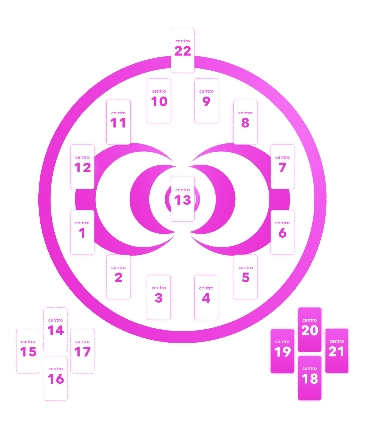 cada una de las posiciones del concentro es un centro: una zona que define un aspecto de tu vida y que tiene influencia en el resto de centros del mapa
