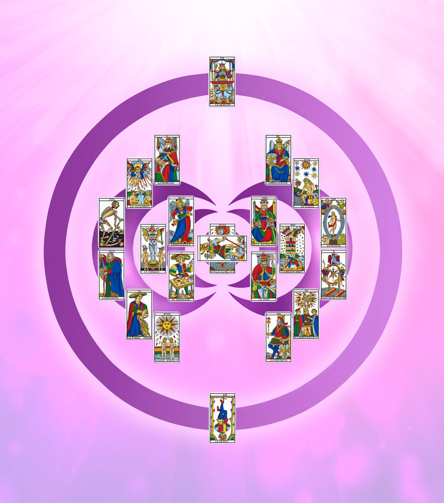el concentro es un mapa creado con los 22 arquetipos del tarot de marsella. podrás conocerlos en profundidad, contemplar sus detalles y consultar sus significados